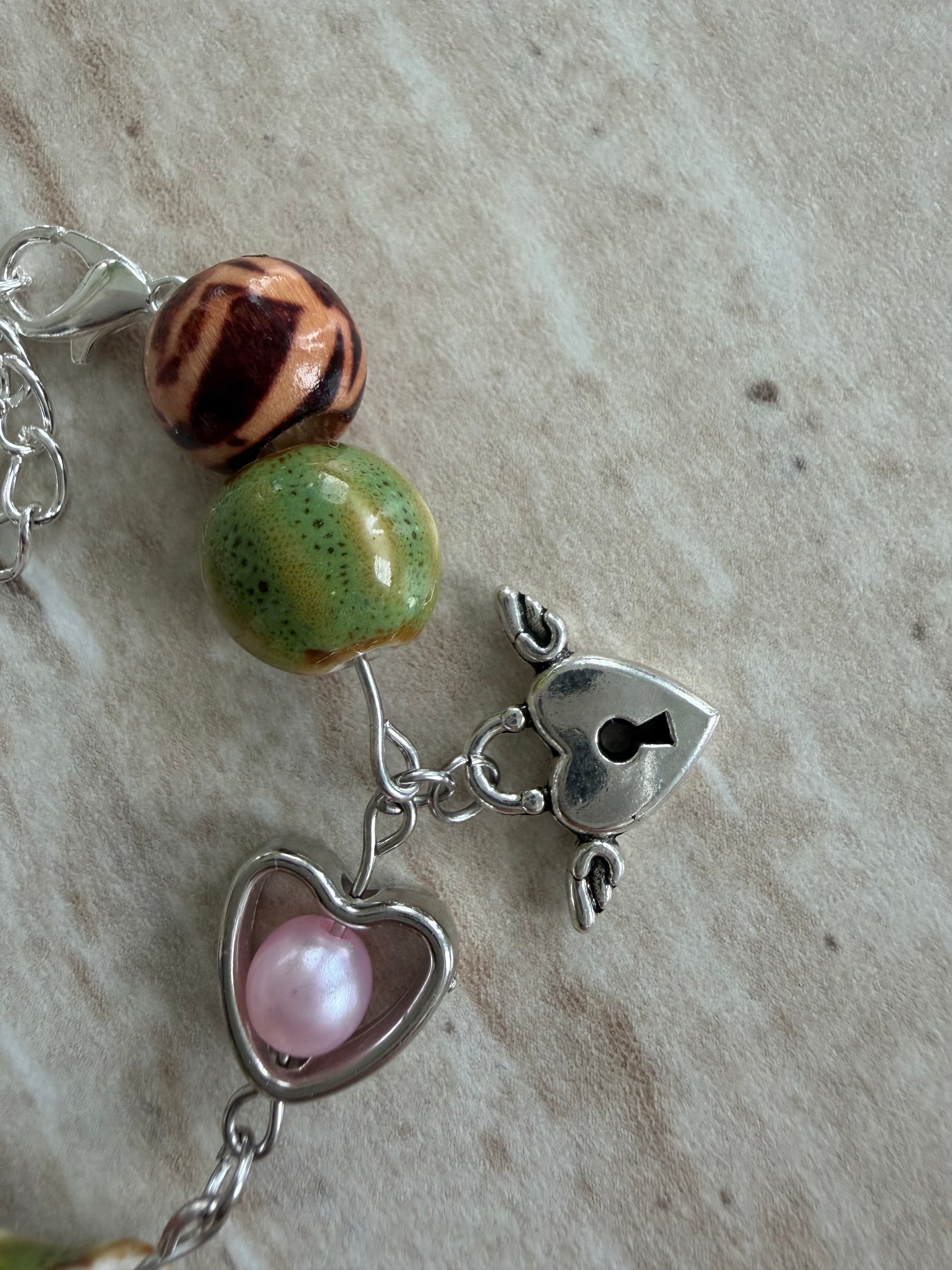 Dieses handgemachte Armband vereint verschiedene Perlenformen mit süßen Anhängern wie Herz-, Stern- und Brief-Details und versprüht dabei echte Y2K-Vibes. Die Kombination aus verspielten Elementen und glänzenden Metallakzenten macht es zu einem besonderen Hingucker.
